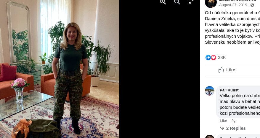 Nebola to náhoda, že Čaputová krátko po nástupe do úradu, keď ešte nebola taká pribratá, tak pózovala v uniforme v 2019.