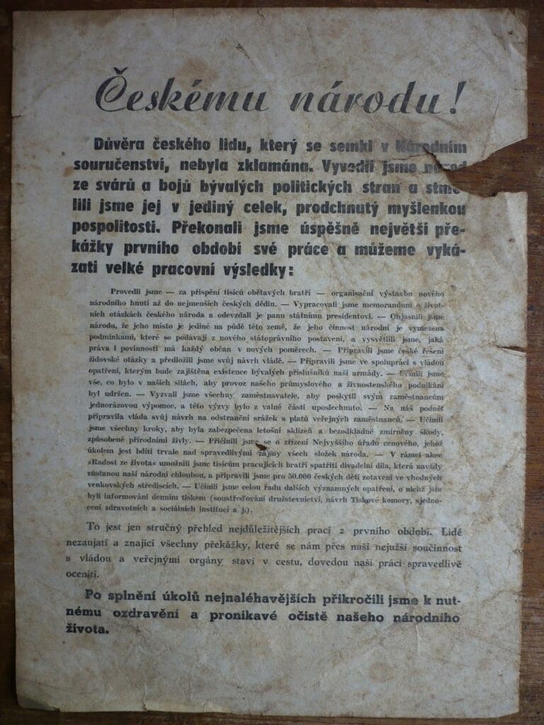 Všimněte si, jak výlepový leták z dob Protektorátu se podobá tomu, co dnes vylepuje po České republice spolek komediantů z Fialovy vlády. Je to úplně ta samá propaganda, jako ten leták Národního souručenství z roku 1941. Od kdy má demokratická vláda právo vylepovat po republice letáky, jako to dělali nacisté a kolaboranti s nacisty z Národního souručenství? A odpověď známe: Jsou to stejní kolaboranti s cizí mocností, jako byli členové Národního souručenství v dobách okupace. Níže máte obrázkovou galerii výlepů, kterou nám do redakce zaslal náš čtenář.