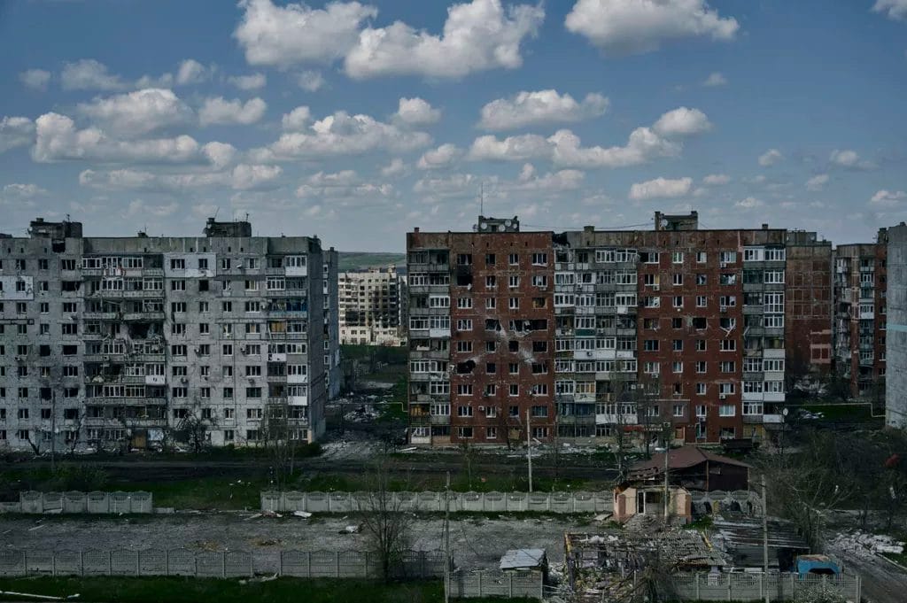 Letecký pohľad na Bachmut, miesto najťažších bojov ukrajinskej armády s ruskými jednotkami v Doneckej oblasti na Ukrajine.
