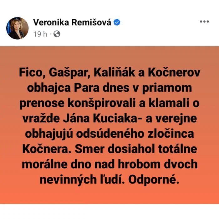 Remišová zrazu moralizuje!. Písal sa rok 2019 a zosnulý novinár Ján Kuciak bol jednou z hlavných tvárí predvolebnej kampane. Nikdy o to nestál, pravdepodobne sa dokonca nikdy nechcel stať politikom. Strany neskoršej vládnej koalície však neváhali a Kuciakove meno, tvár aj odkaz naplno využili vo svojej predvolebnej kampani a ich marketing bol obsahovo naplnený bez toho, aby prezentovali akúkoľvek zmysluplnú víziu pre Slovensko. Prezentovali pri tom verziu o talianskej mafii, alebo o napojení vraždy na sociálnych demokratov zo Smeru-SD. Tieto verzie medzi časom v podstate vyvrátili dôkazy, vyšetrovatelia aj súdy.