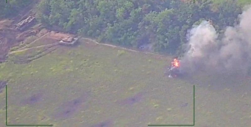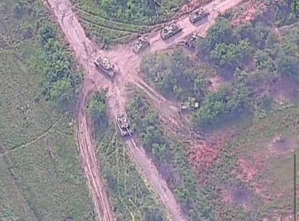 Podľa videa nasnímaného dronom; Vidíme, že asi 10 ukrajinských tankov a obrnených transportérov bolo zničených len za 2 minúty.