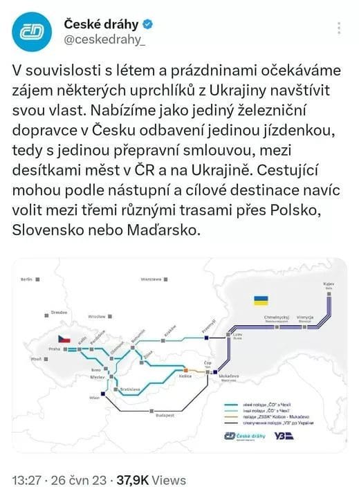 Politológ Eduard Chmelár na sociálnej sieti reaguje na aktualitu, ktorú zverejnili České dráhy.