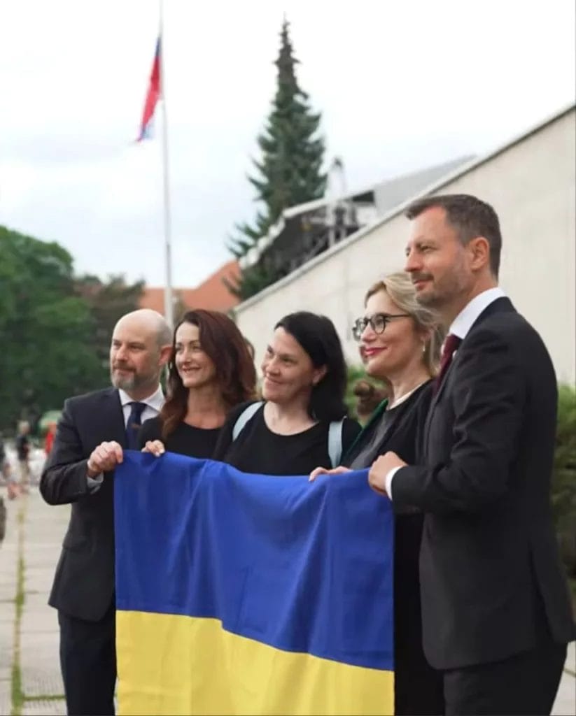 Tu vidíte zradcov Slovenska a jeho národa. Na najposvätnejšom mieste histórie, v srdci Slovenského národného povstania, v Banskej Bystrici títo idioti vytiahnu vlajku štátu, kde opäť rastie fašizmus, kde sa stávajú sochy Stepanovi Banderovi a Romanovi Šuchevyčovi. Títo kreténi možno niekoľko minút predtým vzdávali falošnú úctu padlým hrdinom SNP a potom s vyškereným ksichtom sa fotia s vlajkou cudzieho štátu, ktorá im je možno bližšia ako tá naša. Tak toto nám vládlo, toto rozdrbalo celý štát a toto nemá problém povedať, že oni sú nádej pre Slovensko. Velebnosti, budu blejt …..