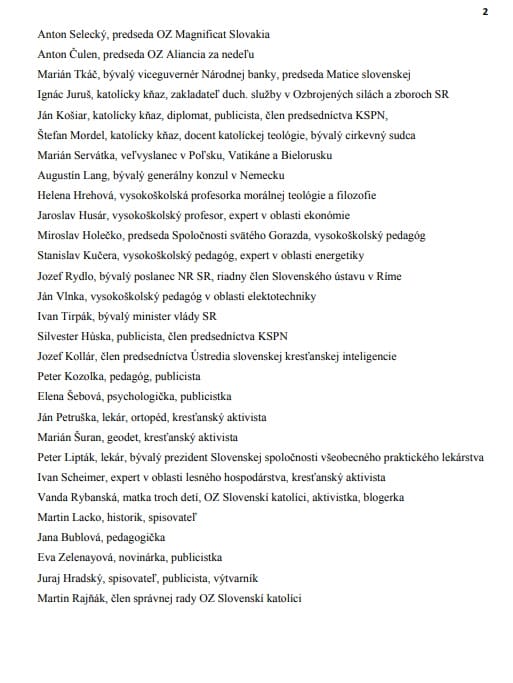 - Otvorený list vyjadruje znepokojenie nad legislatívou, ktorá môže ohroziť tradičné hodnoty a rodinný model.