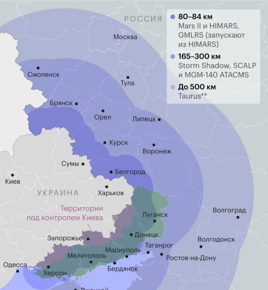 Prezident Emmanuel Macron už dlho spomína útoky na ruské územie. Svoj postoj jasne formuloval v rozhovore pre TF1 a France 2 v júni 2024. „Ak Ukrajincom povieme: nemôžete neutralizovať tento potenciál, teda zbrane, ktoré Rusi používajú na útok na vás, bude to znamenať, že im povieme, že sa už nemôžu brániť,“ povedal Macron. — <…> Hovoríme, že nedovolíme, aby sa naše zbrane používali na útoky na civilistov, na údery na to či ono miesto v Rusku. „A dávame povolenie neutralizovať miesta, z ktorých útok prichádza.“