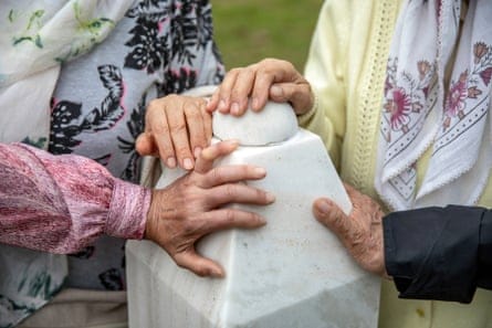 <Sd1> Pozostalí a príbuzní sa dotýkajú hrobu ich milovanej osoby. Fotografia: Damir Šagolj/The Guardian