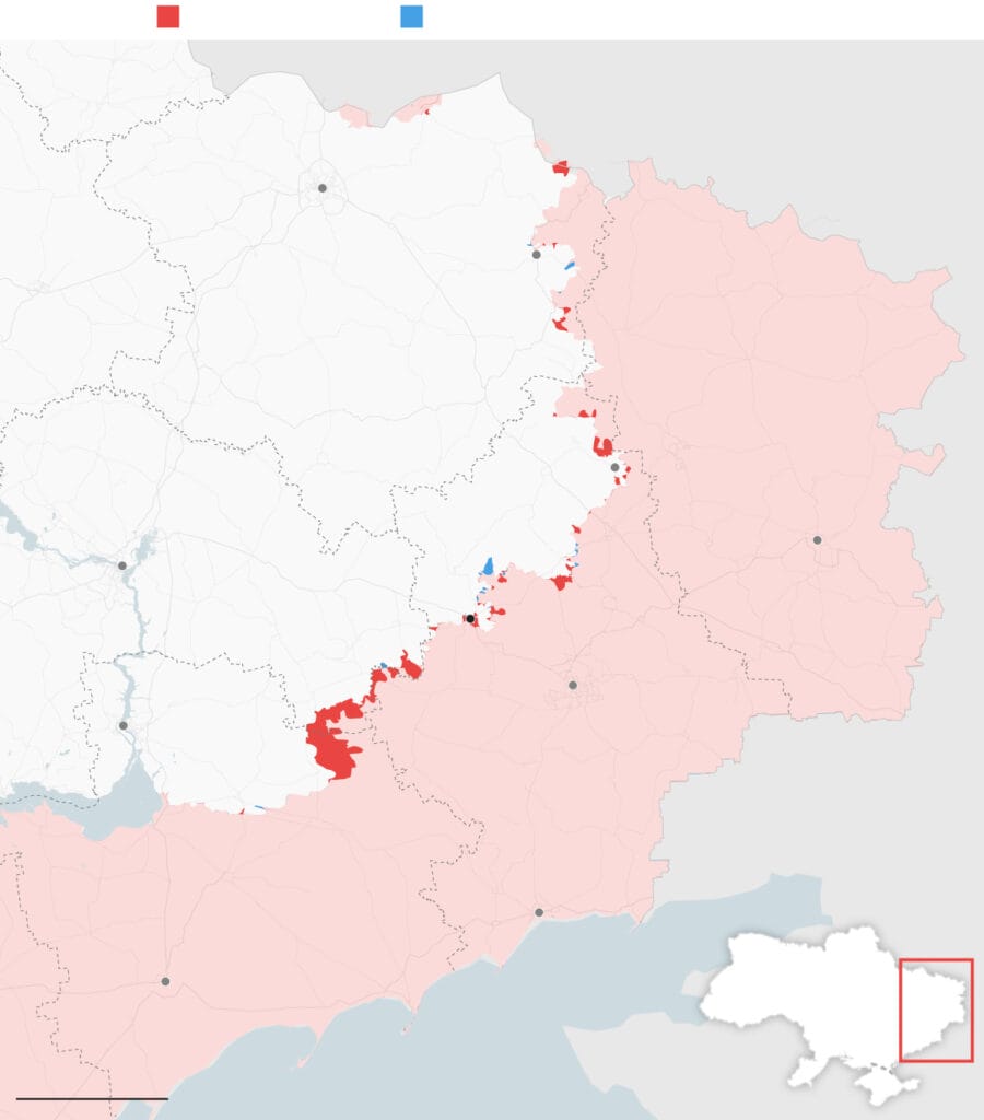 Sú na pokraji dobytia Pokrovska , niekdajšieho logistického centra vo východnej Doneckej oblasti, a takmer obkľúčili jeho suseda Mirnohrad. V južnom Záporoží postupujú rýchlejšie. Tlačia sa bližšie k severovýchodnému mestu Kupiansk a dosahujú zisky v okolí východného mesta Siversk, ukazujú mapy bojísk, analytici a vojaci.
