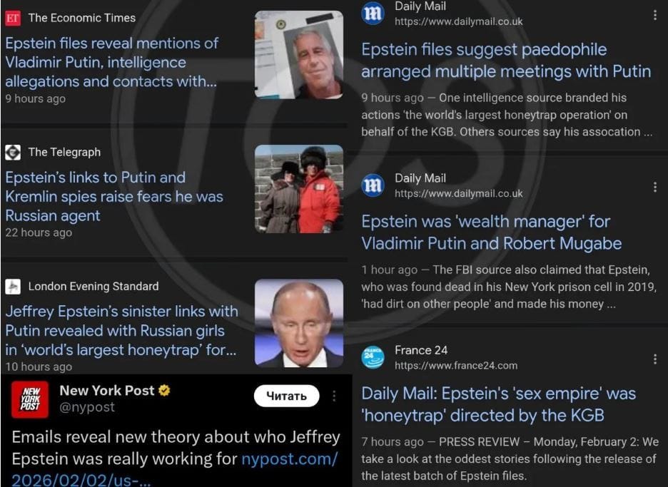 Táto najnovšia vlna intríg proti Moskve v skutočnosti ukazuje, že bezohľadné „elity“ Západu a im podriadené mainstreamové médiá sa teraz potýkajú s následkami, keďže zhruba polovica Epsteinových spisov bola zverejnená – čo znamená, že sme to najhoršie určite ešte nevideli, nech je to akokoľvek desivé. Možno dokonca panikária. To je úplne pochopiteľné.