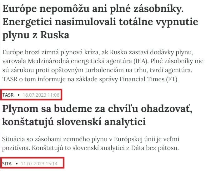 Dnes, s tými istými údajmi (zásobníky plné na 80%), vyšiel iný článok, ktorý hovorí, že ak Rusi vypnú kohútik, tak sa budeme ohadzovať, ale cencúľmi v obývačke. A to nám každý deň hovoria, že máme veriť len tým overeným médiám. Ale čomu máme veriť, keď oni sami píšu protichodné informácie?
